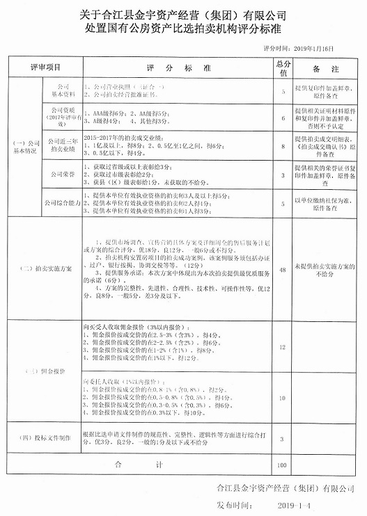 關(guān)于金宇公司處置國有公房資產(chǎn)比選拍賣機構(gòu)的公告