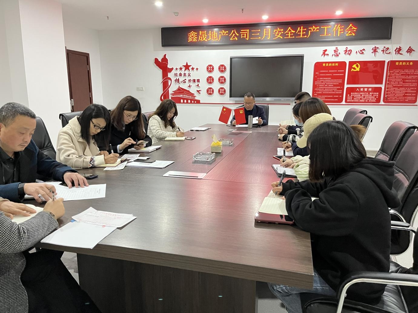 2022 年 3 月 31 日,瀘州鑫晟房地產(chǎn)開發(fā)有限公司組織召開 三月安全生產(chǎn)工作會,會議由董事長任東財主持,公司全體員工 參加。