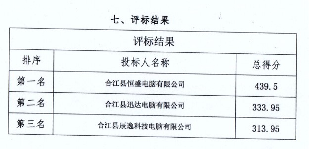 中選單位為:合江縣恒盛電腦有限公司,中選金額為:4899140.00元。